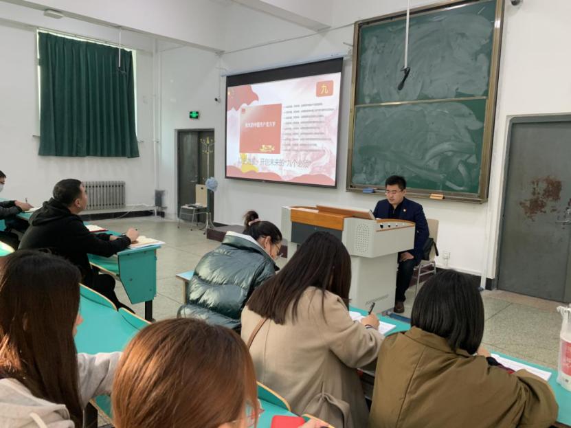 11月3日上午在致远楼第一会议室,赵兴明书记以“井冈山斗争与井冈山精神”为题,从井冈山斗争历史概况、井冈山精神的科学内涵、井冈山精神的现实意义三个方面,以图、文、视频为载体,生动地讲述了井冈山斗争地历史,详细阐述了井冈山精神及现实意义。