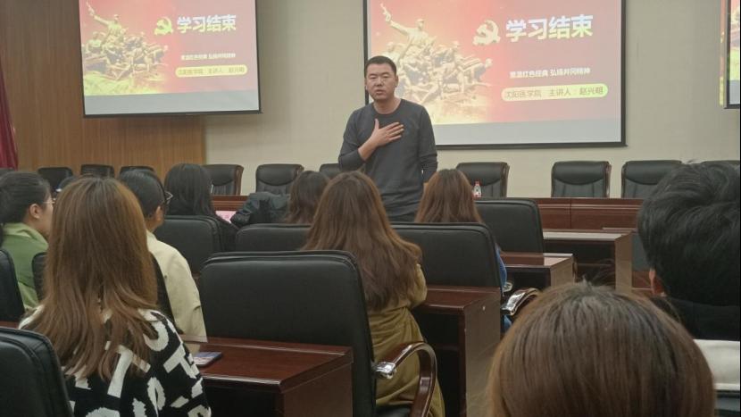 10月27日下午在第一教学楼J105教室,常拓老师以“习近平总书记在庆祝中国共产党成立100周年大会上的讲话”为主题,讲述了党的初级知识,并与同学们共同观看电影《长津湖》的片段,感受革命先辈艰苦卓绝的奋斗精神,号召学生们要以史为鉴、开创未来,积极加入党组织,为中国共产党注入新的活力。