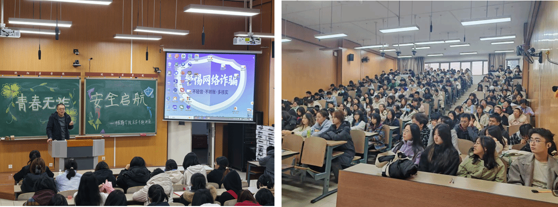 为全面提高学生的反诈认知水平,增强学生的防范意识,2025年10月20日,MG冰球突破网站与保卫处联合举办反诈专题活动,特别邀请沈阳市公安局于洪分局新型犯罪侦查作战大队陈佳瑶警官为学院全体在校生开展反诈专题讲座。